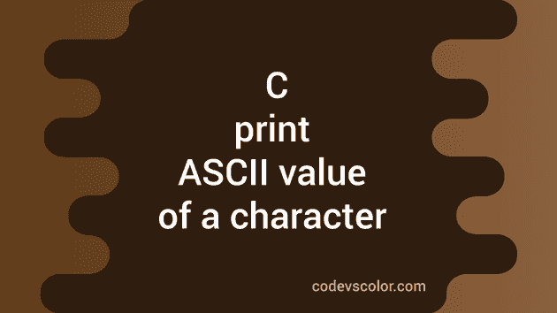 American Standard Code for Information Interexchange or ASCII is a character encoding standard or a value between 0 and 127, that determines a character variable. For example, ASCII value of ‘A’ is 65. In this example program, we will learn how to print the ASCII value of a character in ‘C’ programming language.