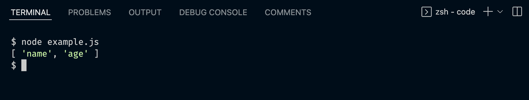 console.log(keys);In this example, we are using Object.keys method to get the keys of givenObject. If you run this, it will print: