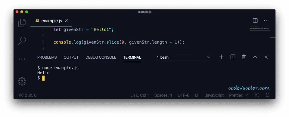 In this post, I will show you three different JavaScript programs to remove the last character of a string. For example, if the string is hello1, it will print hello. Try to run these examples and drop one comment below if you have any queries.