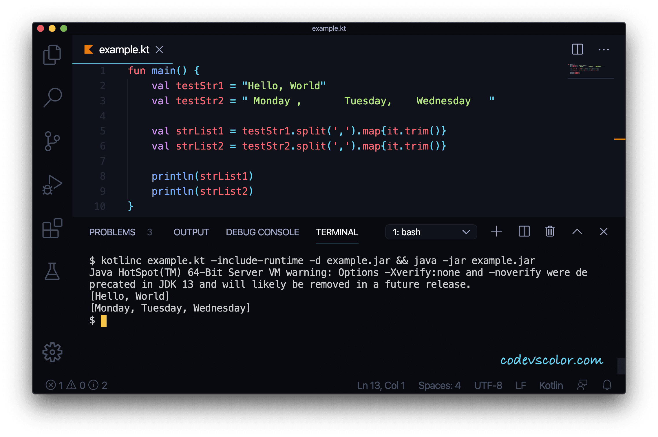 This tutorial will show you how to convert one comma separated strings to a list in Kotlin. Each word in the list will be one item of the list. For example, if the string is Hello, World, it will put both words in a list like [“Hello”, “World”].