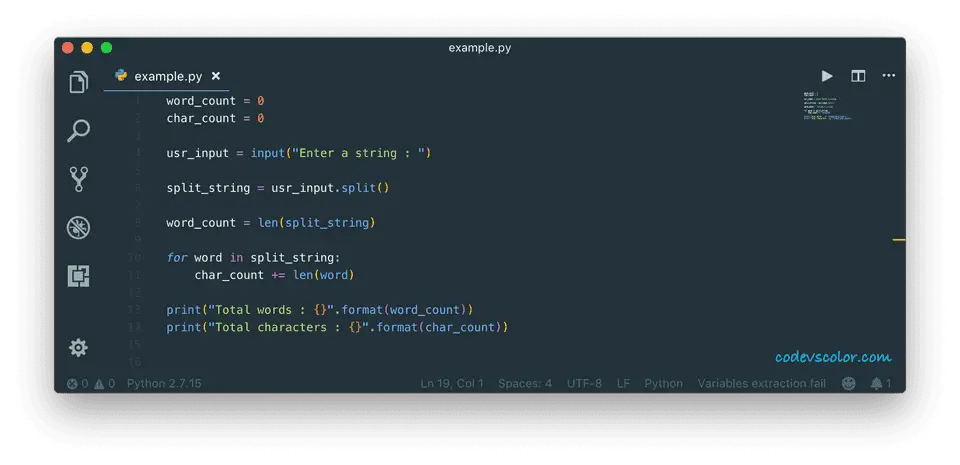 In this tutorial, we have learned how to find the count of words and characters in a string in Python. It is one of the most commonly used programs in Python or any other programming language. You can use a similar approach to count the total number of words and characters in a file.